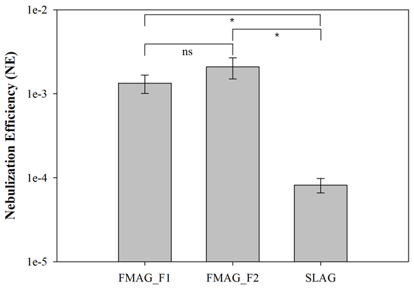 The goal of this study was to compare the performance of two aerosol generators in terms of nebulization efficiency, size distribution, bacterial fragmentation, and the stresses produced on bacteria during nebulization, including loss of viability and culturability. Our findings indicated that bacterial viability is significantly influenced by nebulization procedures, and nebulization efficiency varies among different nebulizers.