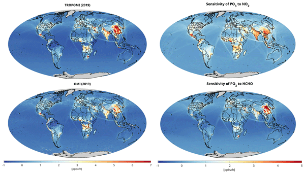 We create long-term maps of PO3 magnitudes along with their corresponding sensitivity maps. This is achieved using a deep learning parameterization method that relies on satellite data, atmospheric models, and ground-based remote sensing. Our approach provides more quantitative information than commonly used methods that depend on ratio-based indicators (such as HCHO/NO2). Additionally, our method considers light and water vapor, making it suitable for applications with GEO satellites.