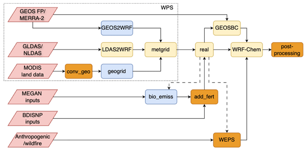 We present the development of the Unified Inputs (of initial and boundary conditions) for WRF (Weather Research and Forecasting)-Chem (UI-WRF-Chem) framework to support the Multi-Angle Imager for Aerosols (MAIA) satellite mission. Major updates include improving dust size distribution in the chemical boundary conditions, updating land surface properties using recent available satellite data and enhancing the representation of soil NOx emissions. We demonstrate subsequent model improvements over several of the MAIA target areas.