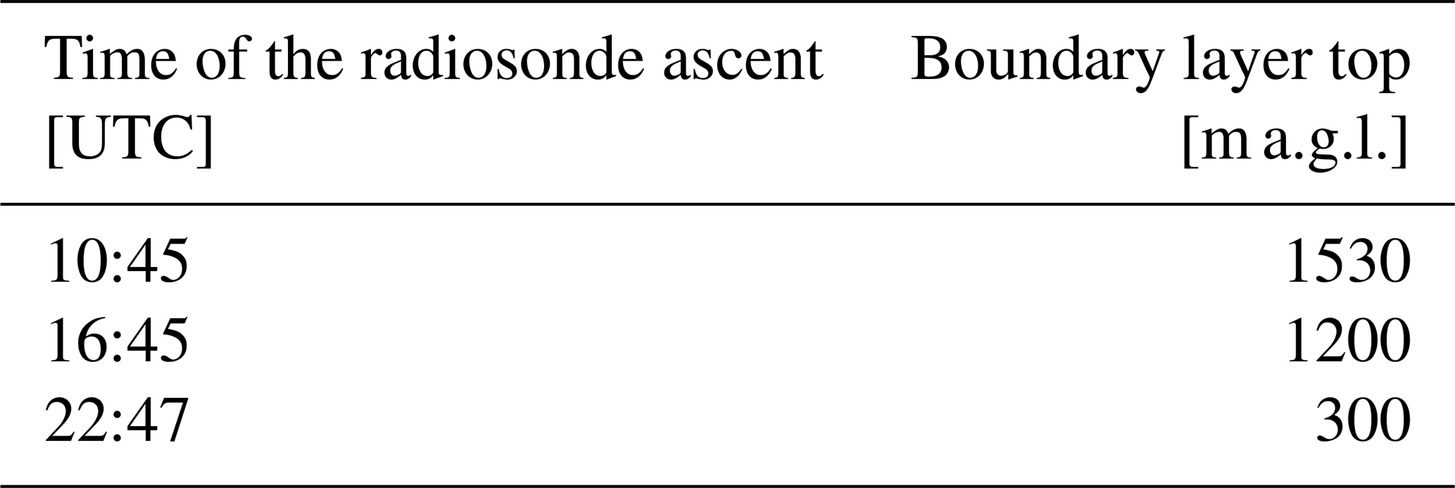 Seibert, P., Beyrich, F., Gryning, S.-E., Joffre, S., Rasmussen, A., and Tercier, P.: Review and intercomparison of operational methods for the determination of the mixing height, Atmos. Environ., 34, 1001–1027, https://doi.org/10.1016/S1352-2310(99)00349-0, 2000. a