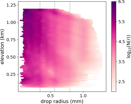 Accurate measurements of drizzle and light rain are essential to improve the understanding of the microphysical processes in boundary layer clouds and constrain both the aerosol–cloud interactions and the cloud–climate feedback. Understanding how the size distribution of drizzle drops evolves in both time and space can provide insight into coalescence, breakup, and evaporation processes that shape cloud macrophysical properties. Current methods of directly measuring DSDs include using either ground-based or airborne disdrometers, devices which directly measure drop sizes. Ground-based disdrometers only measure drops which fall all the way to the surface and have a limited capability to observe the smallest precipitation drops (Wang and Bartholomew, 2023). Airborne measurements are more likely to capture data at several elevations; however these measurements are sparse.