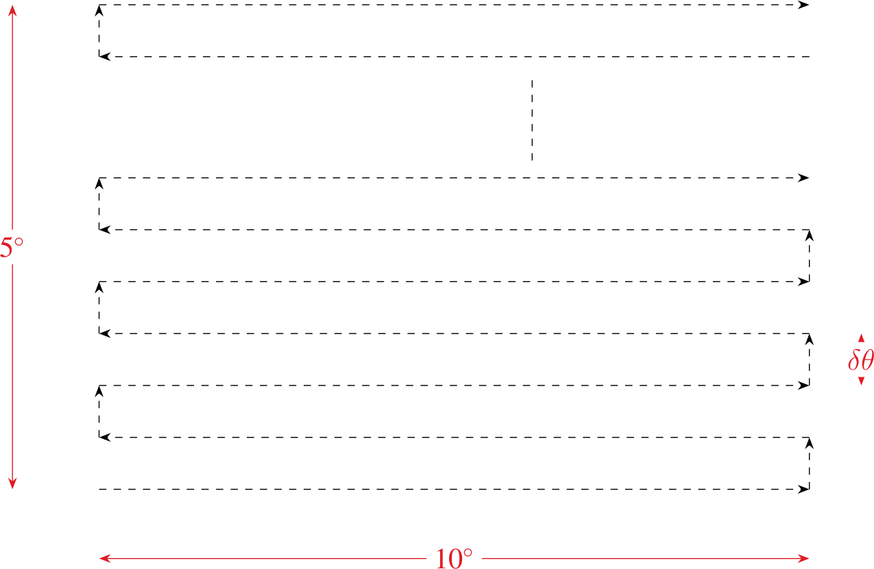 The sketch of the radar scan strategy is shown in Fig. 5 for the StXPol and SPLASH radars. The scan consisted of 25 subsequent sector scans that were spaced in elevation by δθ=0.2° for SPLASH and StXPol and δθ=0.1° for CHILL. The antenna speed was set to approximately 1° s−1 such that one full box scan was completed in slightly less than 5 min. The start elevation was 0°.