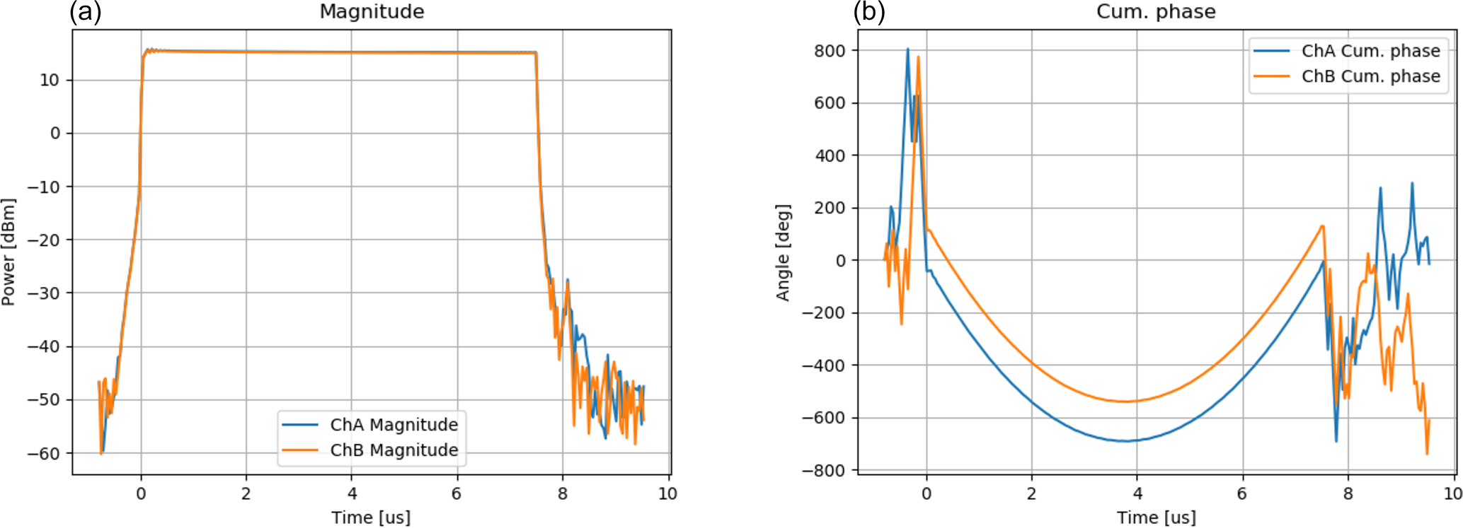 The precise determination of Kstatic in the laboratory requires conducting the three distinct measurements outlined earlier, which necessitate the use of accurate RF measurement equipment. In our case, measurements were carried out using a signal generator capable of producing pulses with a wide range of amplitudes, along with a low-noise signal analyzer to detect weak pulses. If either the signal generator or the signal analyzer has calibration offsets, it is essential to compensate for these offsets dynamically throughout the measurement process. Furthermore, the measurement equipment must be synchronized to a common frequency reference. Cable losses and reflection coefficients (S11 parameters) at the connection interfaces must also be considered to achieve measurement accuracies within 0.5 dB. As an alternative to using a signal generator and signal analyzer, Kstatic could also be determined with a vector network analyzer (VNA) capable of operating with pulsed signals.