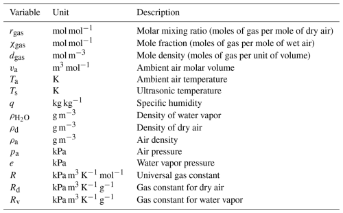 The proportionality factor β depends on the joint probability distribution of variations in the vertical wind velocity and the trace gas concentration (Milne et al., 1999). Without a deadband and under an ideal joint Gaussian distribution of w and c, β is 0.627 (Wyngaard, 1992; Baker et al., 1992), but the dependence of β on the prevailing atmospheric conditions; the deadband width; and, eventually, the scalar, e.g., the trace gas concentration, itself adds uncertainty into the calculated flux (Siebicke and Emad, 2019). Grönholm et al. (2008) showed that, with a deadband dynamically adjusted based on the standard deviation of the vertical wind velocity, β does not depend on the atmospheric stability, allowing the use of a constant value in flux calculations. Consequently, assuming similarity in the turbulent exchange of two quantities, β can be determined with Eq. (1) from a scalar where the flux is known from EC measurements, e.g., temperature or CO2 (Rinne et al., 2021).