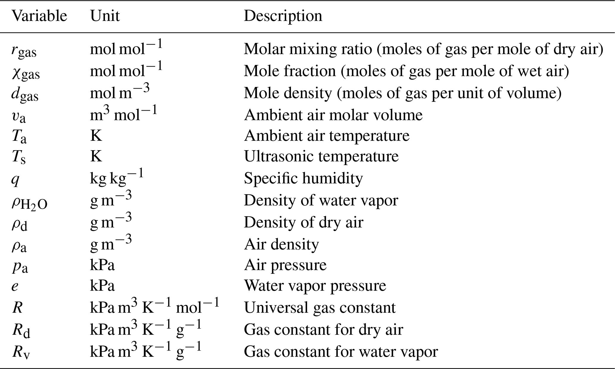 The proportionality factor β depends on the joint probability distribution of variations in the vertical wind velocity and the trace gas concentration (Milne et al., 1999). Without a deadband and under an ideal joint Gaussian distribution of w and c, β is 0.627 (Wyngaard, 1992; Baker et al., 1992), but the dependence of β on the prevailing atmospheric conditions; the deadband width; and, eventually, the scalar, e.g., the trace gas concentration, itself adds uncertainty into the calculated flux (Siebicke and Emad, 2019). Grönholm et al. (2008) showed that, with a deadband dynamically adjusted based on the standard deviation of the vertical wind velocity, β does not depend on the atmospheric stability, allowing the use of a constant value in flux calculations. Consequently, assuming similarity in the turbulent exchange of two quantities, β can be determined with Eq. (1) from a scalar where the flux is known from EC measurements, e.g., temperature or CO2 (Rinne et al., 2021).