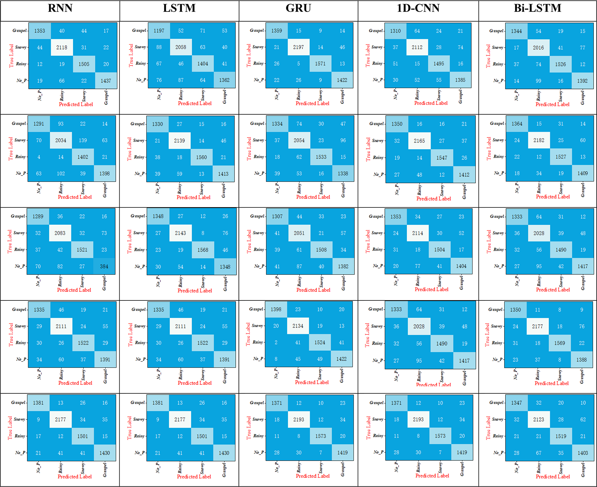 The Confusion matrixs of different deep learning algorithms are presented as follows: