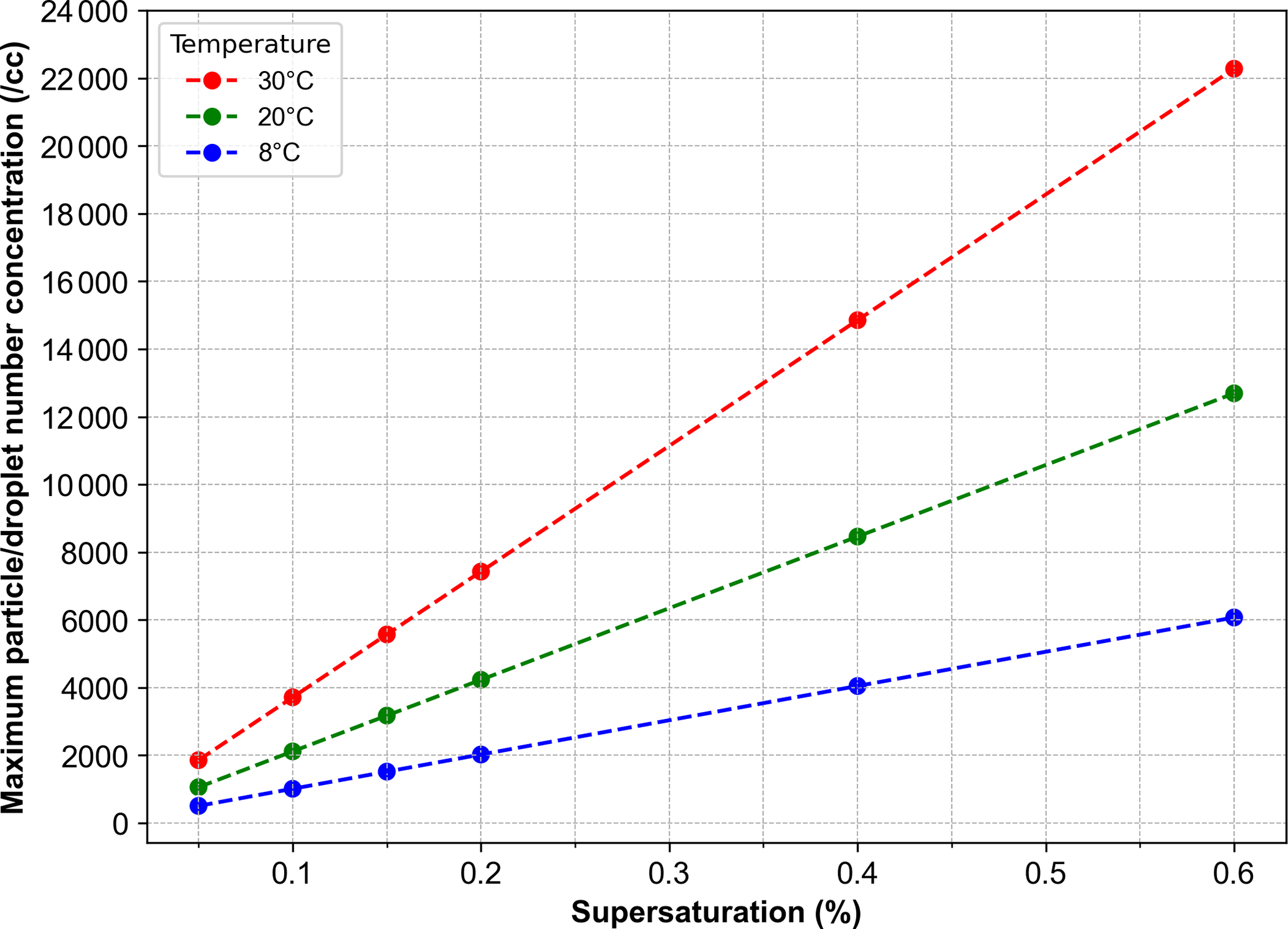 A5 Relationship between supersaturation, temperature and maximum droplet number concentration