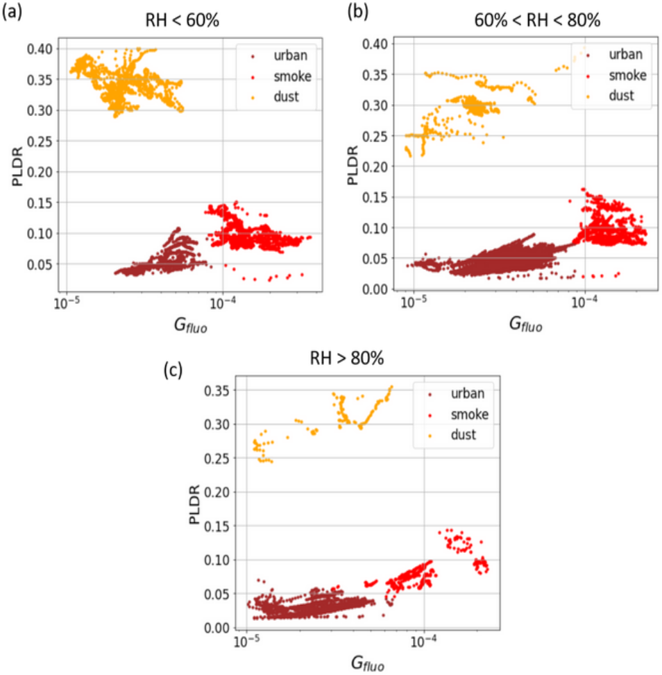 To conclude, this study underscores the potential of fluorescence lidar in aerosol classification and the benefits of unsupervised learning approaches for atmospheric studies. Future work will focus on improving aerosol mixture identification and incorporating additional optical parameters to refine classification accuracy.