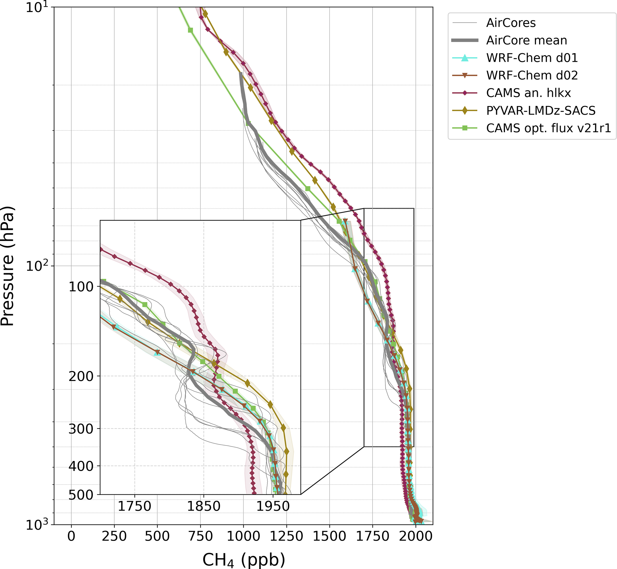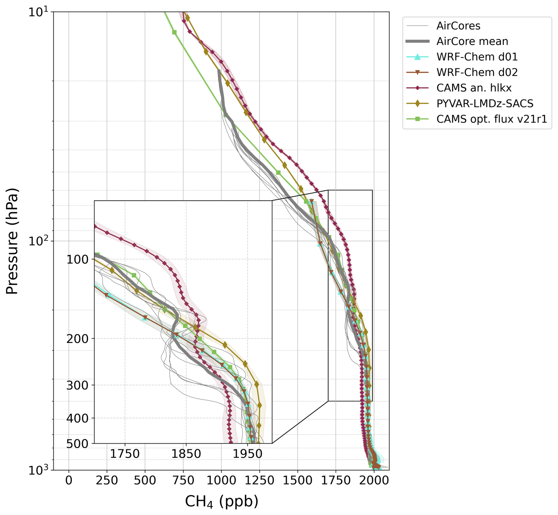 4.1 Comparison between modelled and observed CH4 profiles