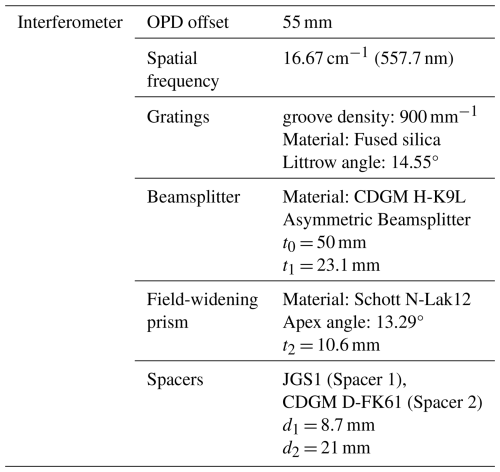 Ray-tracing software is applied to optimize the ASHS interferometer configuration by considering restrictions of the OPD offset, field-widening and thermal compensation, etc. The final optimization parameters for measuring the atomic oxygen green line emission are given in Table 1.
