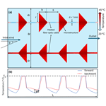 The modeling was conducted using incompressible air, with the study type set to stationary. All computations were executed on a desktop computer equipped with an Intel(R) Core(TM) i7-8700 CPU (3.20 GHz) and 64 GB of RAM. Figure 1 illustrates the schematic of the filled-coned microstructures attached to a FO cables. The computational domain was determined parametrically to locate six microstructures in length. The height was determined to be 16r, with r being the radius of the cone. The separation distance between the forward and backward FO cables was determined to be 8r. The dimensions were selected and optimized with several test runs to maintain accuracy and reduce computational costs. Solid copper was used as the FO cable material, and polyvinyl chloride (PVC) was chosen for the microstructures, and gas form air was used for the rest volume of the model. It is important to note that FO cables currently used in atmospheric measurements typically consist of a stainless steel sheath filled with gel, encased in a polyethylene (PE) layer which has about a 1s effective response time (Thomas et al., 2012). In this study, solid copper was used as a substitute to simplify the model and focus on the geometry of the microstructures rather than the properties of FO-cable. These materials were selected from COMSOL's built-in library, which includes all standard properties such as dynamic viscosity, heat capacity at constant pressure, density, and thermal conductivity.