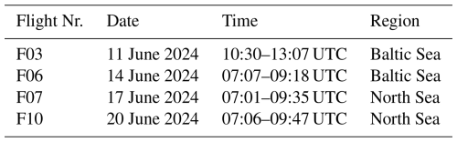 Table 1Overview of the research flights with TPC-TOSS during TPEx I.
