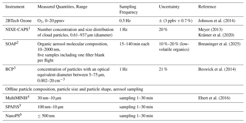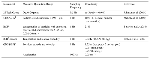 Table 2Overview of the instrumentation of the Learjet as well as the measured quantities.
