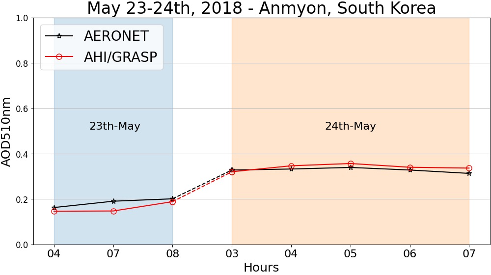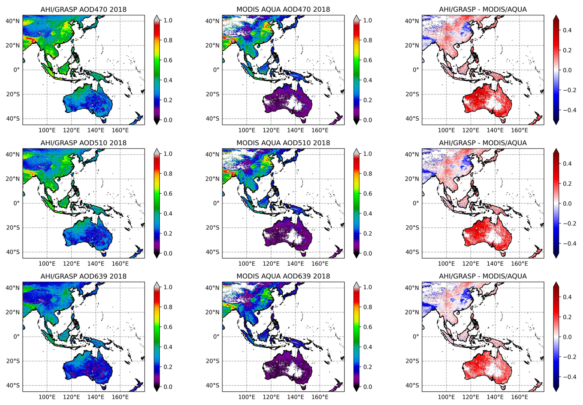 The work was supported by the PANORAMA project. Additional travel support of collaborative exchanges was provided by the HORIZON-MSCA-2022-SE-01 “GRASP-SYNERGY” project under contract no. 101131631, signed between REA and GRASP SAS within the European Horizon Europe programme. The authors gratefully acknowledge the Himawari-8, AERONET and MODIS teams for sharing the datasets and making them available for the community.