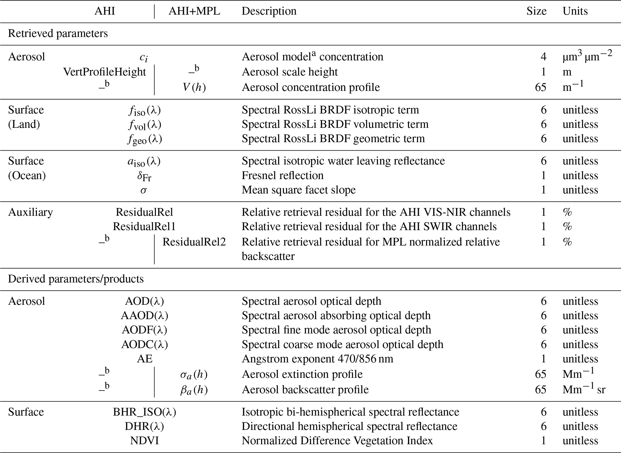 Table 4Description of AHI/GRASP retrieved and derived aerosol and surface products.