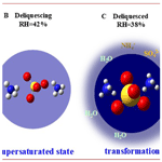 It has long been assumed that aerosol phase transition behaviors are thermodynamic equilibrium and may be achieved in a short amount of time. For example, the deliquescence of particulate matter is one of phase transition behaviors. The particle should take up some amount of water to establish thermodynamic equilibrium upon increasing humidity. Currently, the phase transition behaviors of aerosol have been extensively investigated by the environmental scanning electron microscope (ESEM) (Treuel et al., 2009; Wise et al., 2008), the hygroscopic tandem differential mobility analyzer (H-TDMA) (Gao et al., 2006), the electrodynamic balance (EDB) (Cohen et al., 1987), microresonator mass sensor (Zielinski et al., 2018), and optical microscopy (Ciobanu et al., 2010) and other methods. These methods can diagnosis the phase transition processes of particles by measuring the particle size, shape and other physical parameters. They have been recognized as some main parameters during the phase transition processes of aerosol particles (Cheng et al., 2015; Gao et al., 2006). These findings reveal that water uptake, initiated by phase transitions in complex aerosols (Wise et al., 2008), leads to organic–inorganic phase separation in fine particles (Li et al., 2021), thereby providing reactive surfaces that facilitate secondary aerosol formation (Sun et al., 2018).