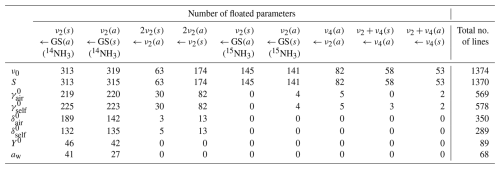 Table 5The number of each type of fitted line parameter for the main NH3 bands analysed in this study.