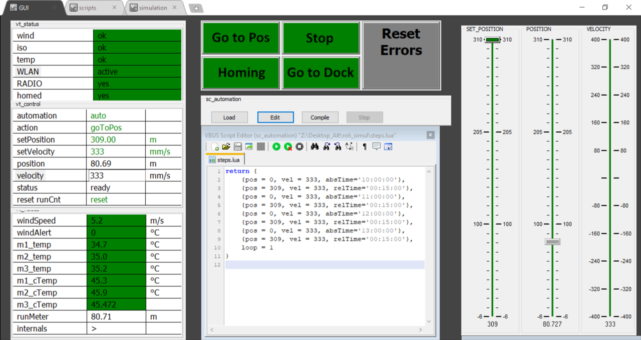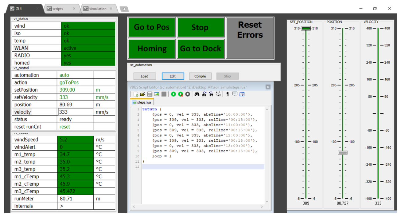 The control and data acquisition functions are managed by the “VBUS system”, a specialized platform developed at the Max Planck Institute for Chemistry (MPIC). This software operates on a computer housed inside a container at the base of the tower. The computer is permanently connected to the RoLi network, facilitating command transmission to the lift and receiving scientific data. Additionally, it is integrated into the ATTO local network for time synchronization and remote access. The VBUS system consists of electronic modules based on microcontrollers and offers a flexible software environment, including scripts and a graphical user interface (GUI). A representative screenshot of the GUI is provided in Fig. A1. The lift movement is entirely controlled by this software. All operations can be executed using four primary commands: