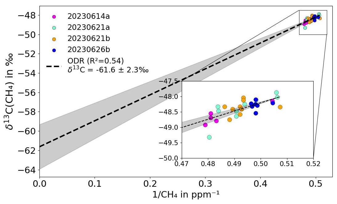 Profound knowledge of GHG emissions, including quantifying sector-specific contributions and understanding underlying processes, is a crucial prerequisite for effective mitigation. Emissions typically are estimated based on bottom-up (BU) methods using emission fluxes from individual source measurements or from process-based emission models, which are then scaled up using statistical data. However, BU methods are sometimes incomplete and inaccurate and need to be verified using the so-called top-down (TD) approach (Nisbet and Weiss2010). TD methods rely on atmospheric observations on different scales, and attribute emissions to specific regions or sectors using measurements of additional tracers, forward transport or inverse modeling approaches. TD methods are furthermore essential to identify possible mitigation targets by providing observational evidence. Until now, most regional to global scale TD measurements have focused on emissions from the fossil fuel sector and waste management (Förster et al.2025; Pühl et al.2024; Krautwurst et al.2024; Tong et al.2023; Lauvaux et al.2022; Irakulis-Loitxate et al.2022; Maasakkers et al.2022; Cusworth et al.2021), because these sectors offer the highest potential for emission reductions (Nisbet et al.2025; Rogelj and Lamboll2024). In addition, large point sources, e.g. from a leaking pipeline or a landfill, usually produce well-defined, localized plumes with GHG enhancements above instrument detection limits.