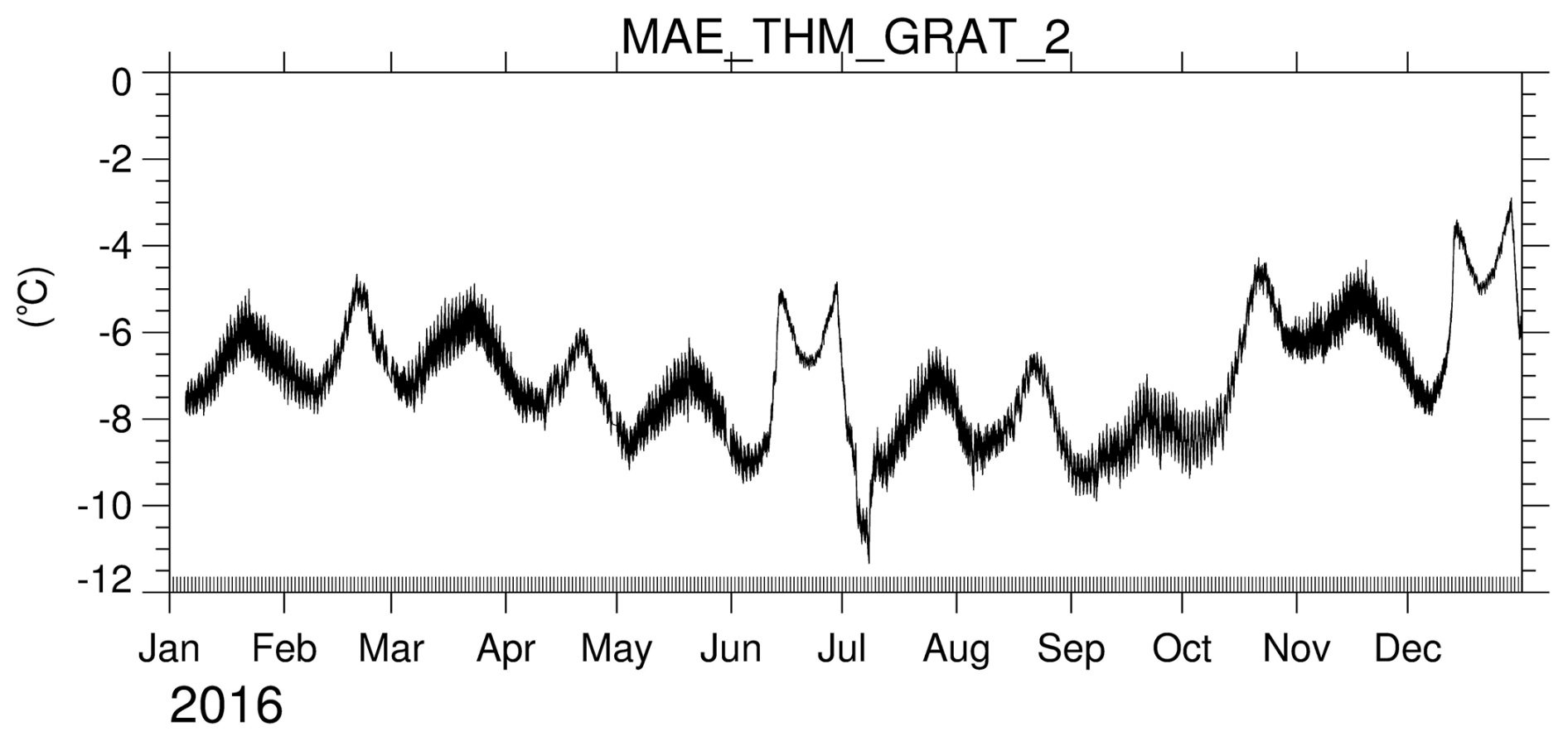 Figure 11 shows a longer-term (1 year) temperature plot for the Visible-NIR spectrometer grating only. Temperature variations are influenced by multiple factors, including month-to-month changes (about 2 °C) due to the approximately 4-month beta angle cycle and the annual cycle of the Earth-Sun distance. The features in June and December result when the satellite is exposed to prolonged sunlight for more than two weeks at high beta angles (> 60°) when no occultation measurements are possible. At this time, MAESTRO only provides high sun measurements. In early July, the temperature drops when the ACE-FTS undergoes decontamination for a few days; during this time, no measurements are taken. Other temperature telemetry records (not shown) display similar patterns but at different magnitudes. Periodic temperature variations occur throughout the mission.