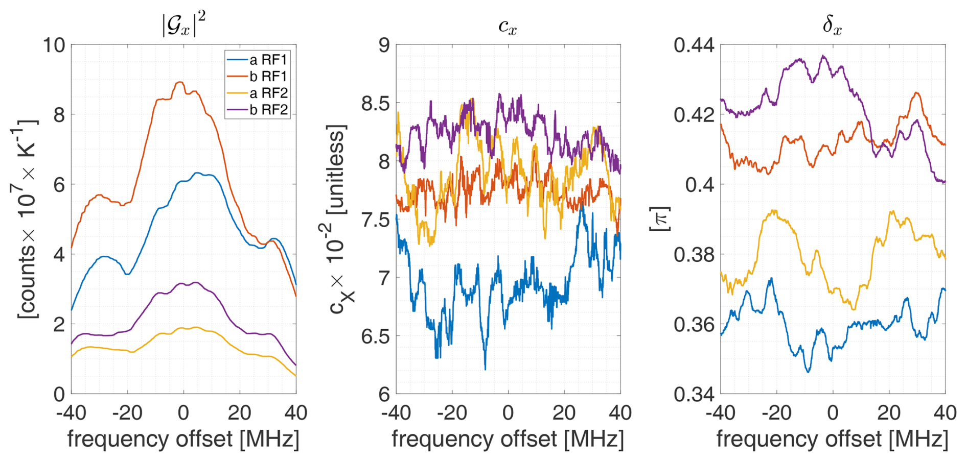 The unpolarized target emits equally for both polarizations, such that , where Thot is the physical temperature of the target. Considering the a-polarization chain (Eq. 21) the spectrometer outputs result in: