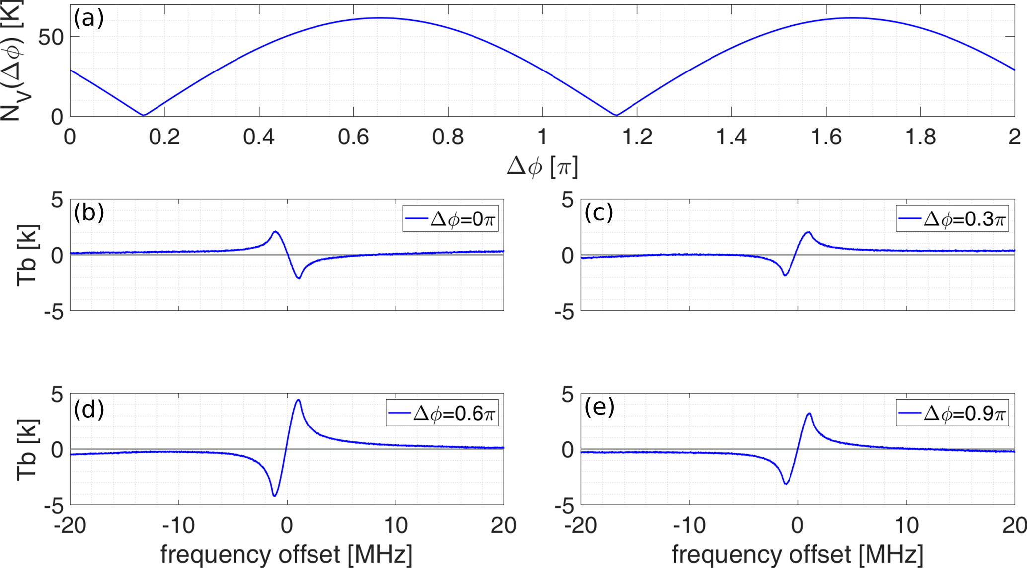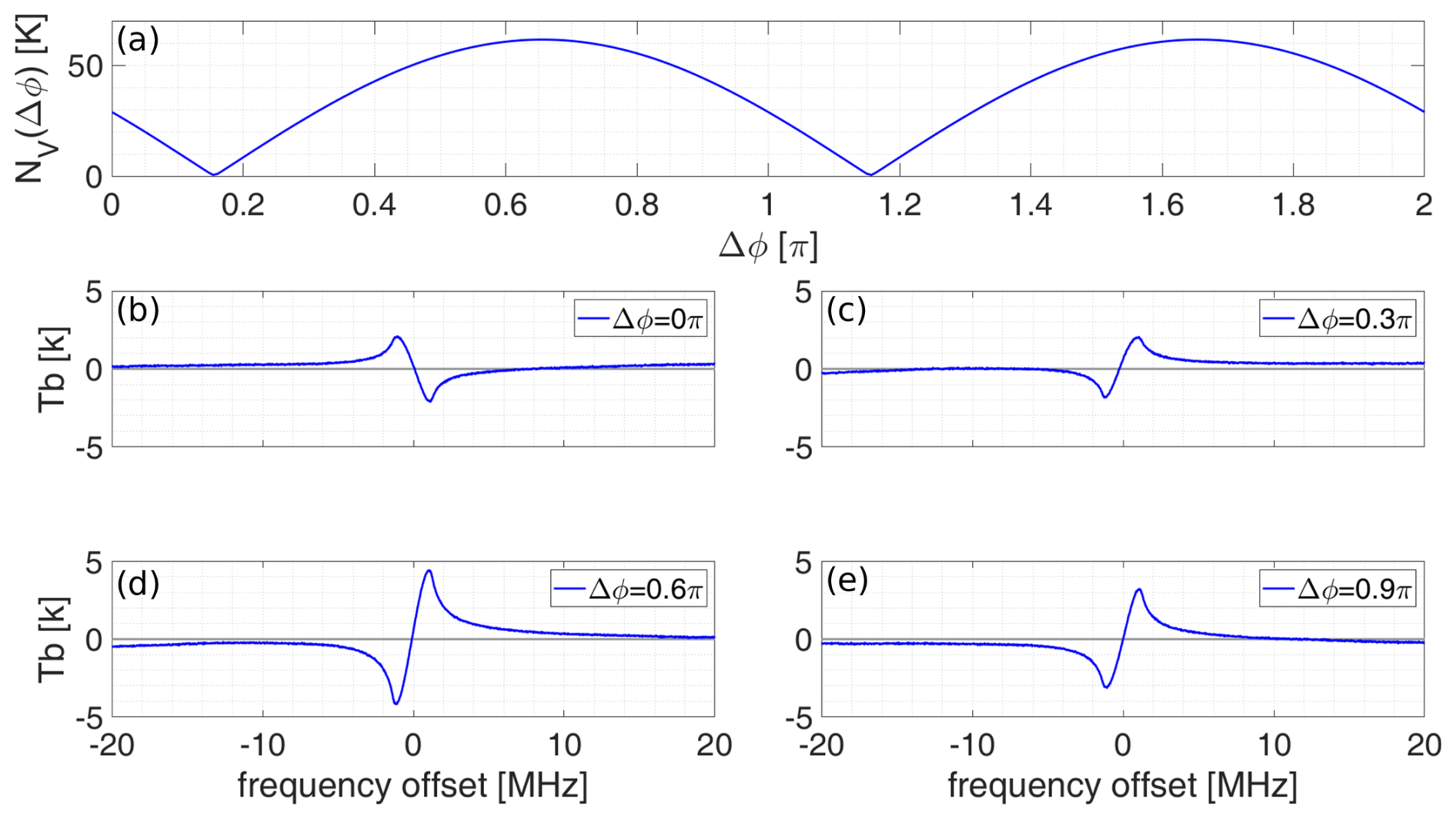 Secondly, we have developed a method to estimate Δϕ on the campaign site, utilizing symmetry properties of the sky measurements. The V-Stokes component of the observed emission lines is anti-symmetric around the line center, whereas the U-Stokes component is symmetric. For the optimal value of Δϕ, the U-Stokes achieves the best symmetry, while the V-Stokes approaches the best anti-symmetry. The optimal Δϕ can be determined by dividing the frequency band with bandwidth Δν into two parts, through the line-center frequency νc, and defining a norm NV for example by: