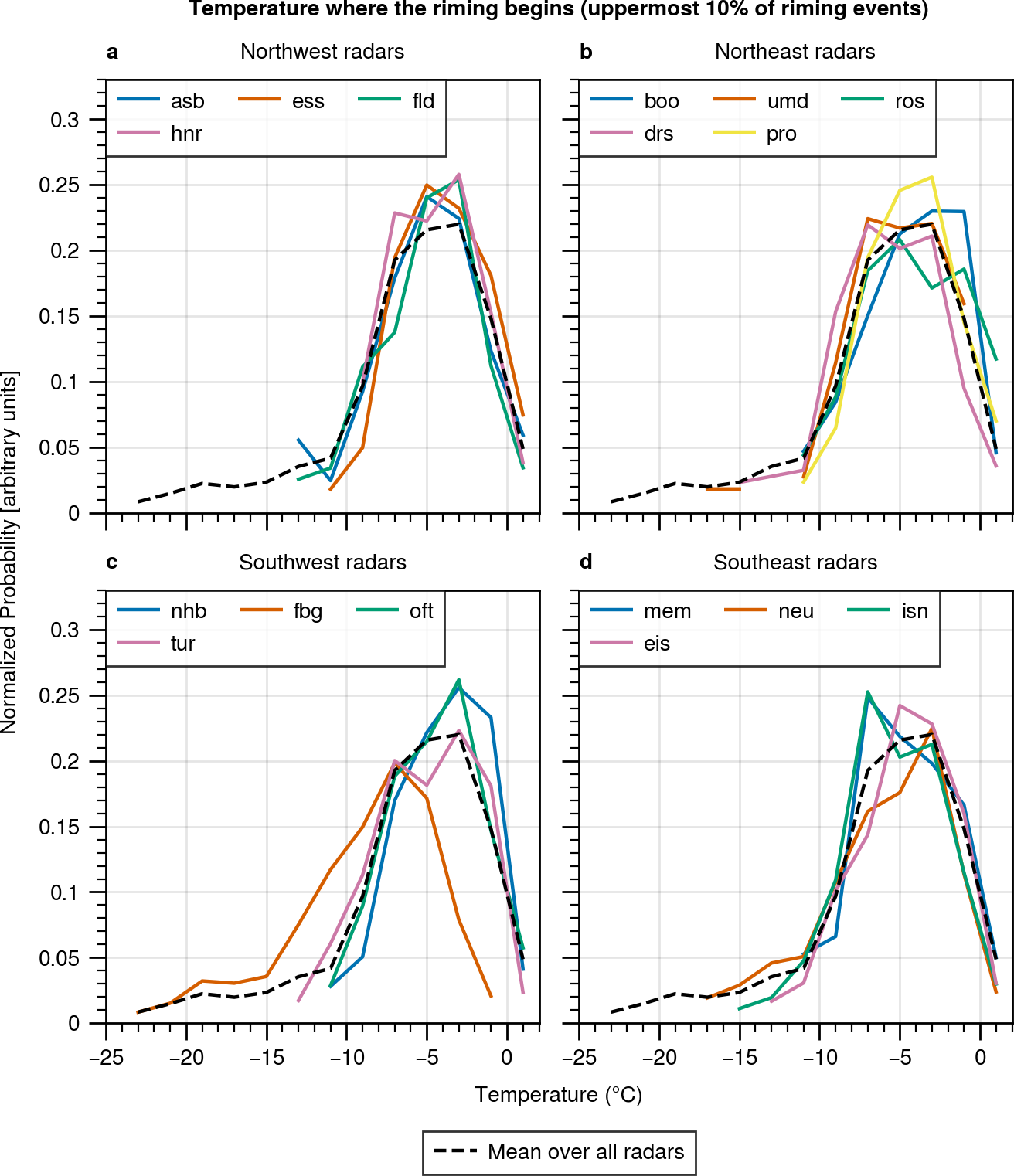 In order to compare the temperature distribution of riming events between different radar sites in Sect. 3.4, we need to correct the distributions for deviations due to the following three points: