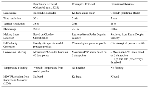 Table 1Comparison of retrieval configurations for the “benchmark”, “resampled” and “operational” retrieval.
