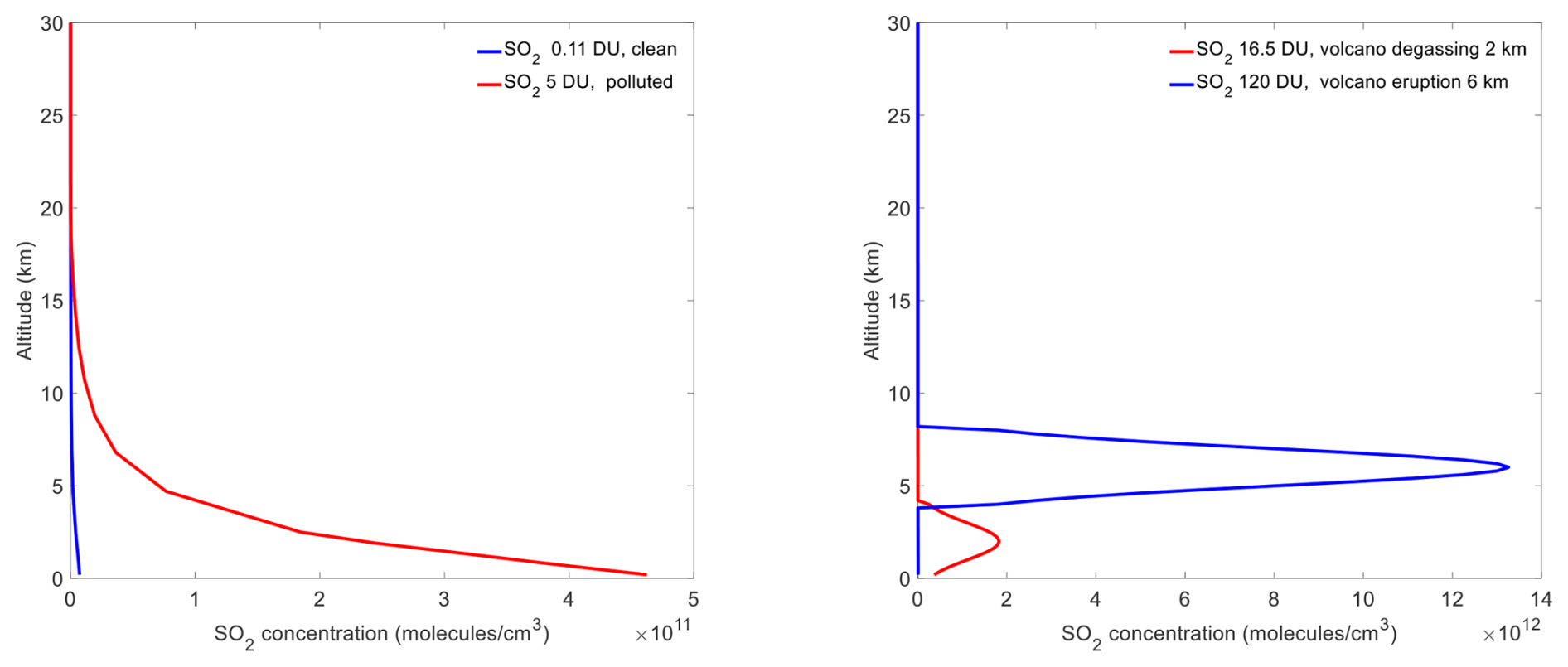 Compared to the monitoring of high SO2 emissions from natural sources such as volcanoes, the monitoring of anthropogenic SO2 emissions from satellite observations is more challenging. The atmospheric SO2 from anthropogenic emissions is generally much lower compared to that of volcanic eruptions, and is primarily concentrated near the surface. The sensitivity of satellite measurements in the UV band near the surface is relatively low because solar UV radiation is partially absorbed and scattered by atmospheric components such as air, aerosols, and clouds during its transmission. As a result, the weakened UV radiation reaching the boundary layer reduces the sensitivity of satellite instruments to PBL SO2 and makes it harder to distinguish SO2 signals from background noise, especially at large solar zenith and satellite viewing angles.