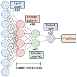 The stacked autoencoder represents a more sophisticated approach to aerosol classification by combining dimensionality reduction with supervised learning in a deep neural network architecture. The model consists of two key components: an autoencoder network that learns compressed representations of mass spectra via its bottleneck layers, and a classification layer that operates on these learned features. The complete architecture, illustrated in Fig. 2, processes the 194-dimensional input (193 mass peaks + particle time-of-flight) through a series of fully connected layers that progressively reduce dimensionality while preserving essential spectral characteristics.