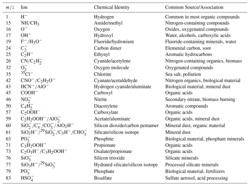 Shen, X., Saathoff, H., Huang, W., Mohr, C., Ramisetty, R., and Leisner, T.: Understanding atmospheric aerosol particles with improved particle identification and quantification by single-particle mass spectrometry, Atmos. Meas. Tech., 12, 2219–2240, https://doi.org/10.5194/amt-12-2219-2019, 2019.