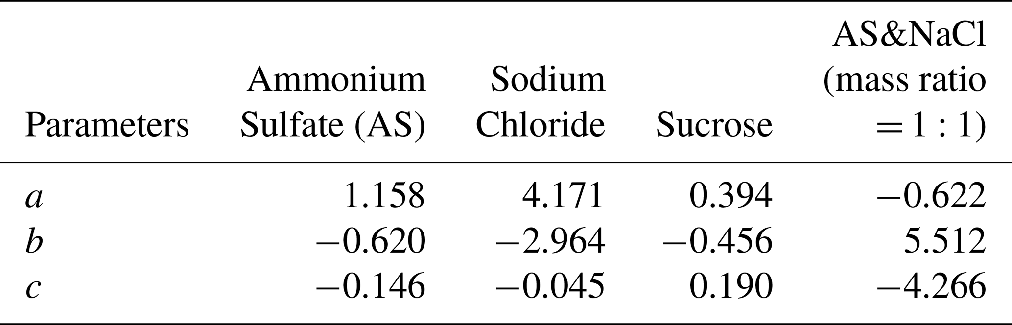 Before introducing the method for determining the dry particle radius, it is necessary to outline the calculation of refractive index for mixed particles. In this study, we employ the physically based molar refraction method to predict the refractive index of mixtures, rather than relying on the empirical volume-weighted approach (Liu and Daum, 2008; Cai et al., 2016). According to the molar refraction method,