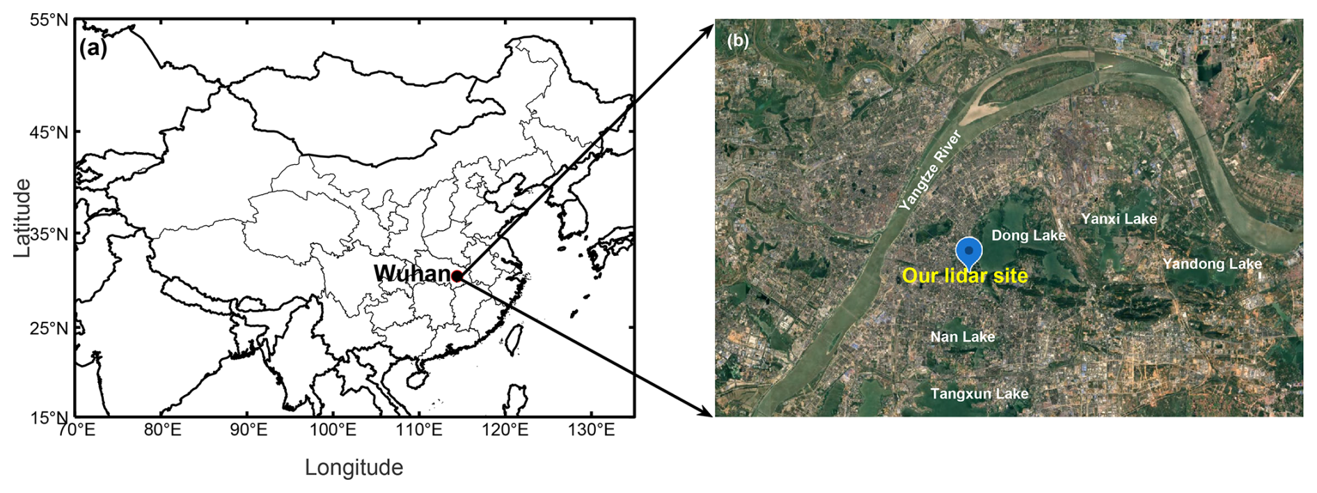Wuhan (30.5° N, 114.4° E) is a major industrial city in central China with a population of over 13 million, producing abundant urban anthropogenic emissions from sources such as vehicle exhaust and industrial fossil fuel combustion (Zhang et al., 2015a). The city lies in the subtropical monsoon region and experiences four distinctive seasons. In winter, the northeast monsoon brings cold, relatively dry weather (Wu and Wang, 2002). Frequent temperature inversions in the lower troposphere suppress vertical convection and often lead to severe air pollution (Zhang et al., 2021). In summer, the southeast and southwest monsoons cause high temperatures and heavy rainfall, creating favorable conditions for pollution dispersion (Ding et al., 2015). Spring and autumn are the transition phases between these two regimes. Additionally, regional air mass transport also plays a significant role in aerosol loading over Wuhan. In spring and winter, mineral dust from deserts in north and northwest China as well as in Mongolia is frequently long-range transported to Wuhan (He and Yi, 2015; Jing et al., 2024). In summer and autumn, agricultural biomass burning in neighboring provinces sometimes contributes to the poor air quality and severe haze events over Wuhan (Zhang et al., 2014; Jing et al., 2025).