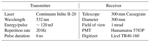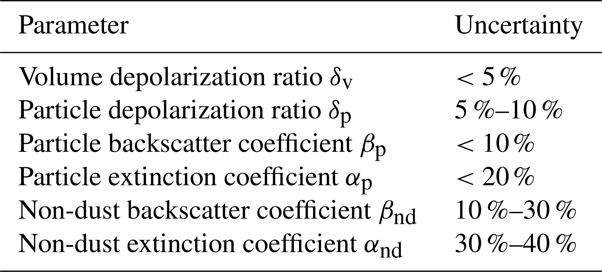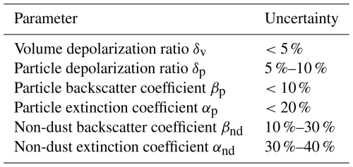 Table 2Estimated uncertainties of the lidar-derived optical properties at 532 nm (Jing et al., 2025).