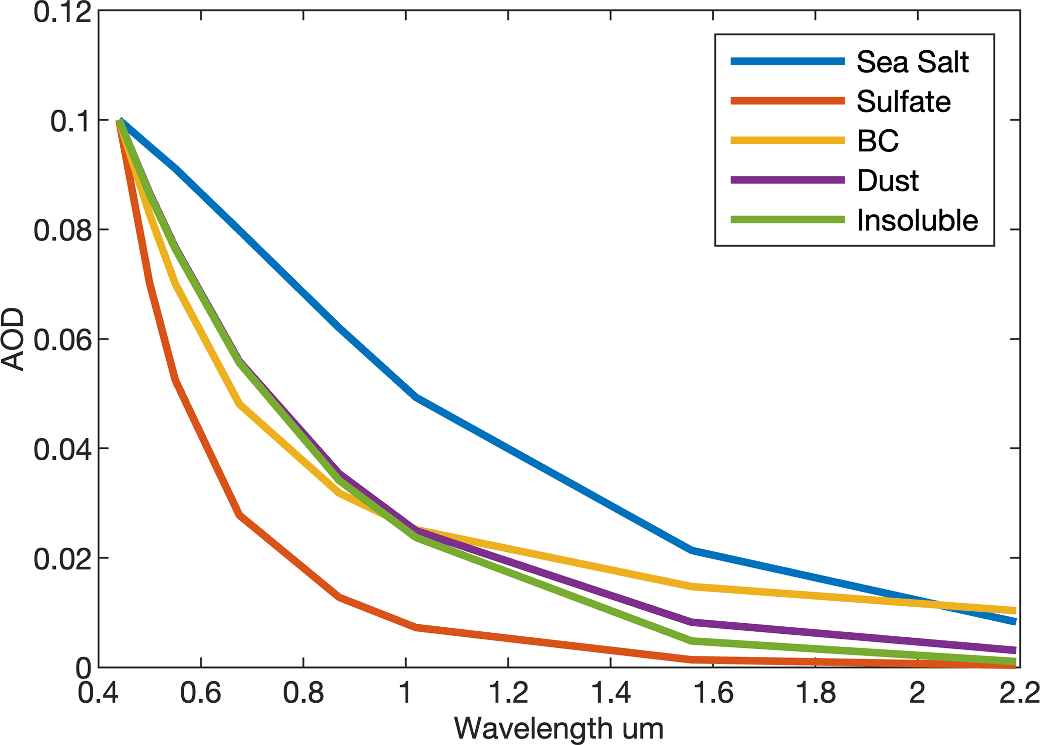 AOD can be derived from the product of aerosol number concentration and the particle extinction cross-section. For a given aerosol component, the column AOD at wavelength λ can be written as