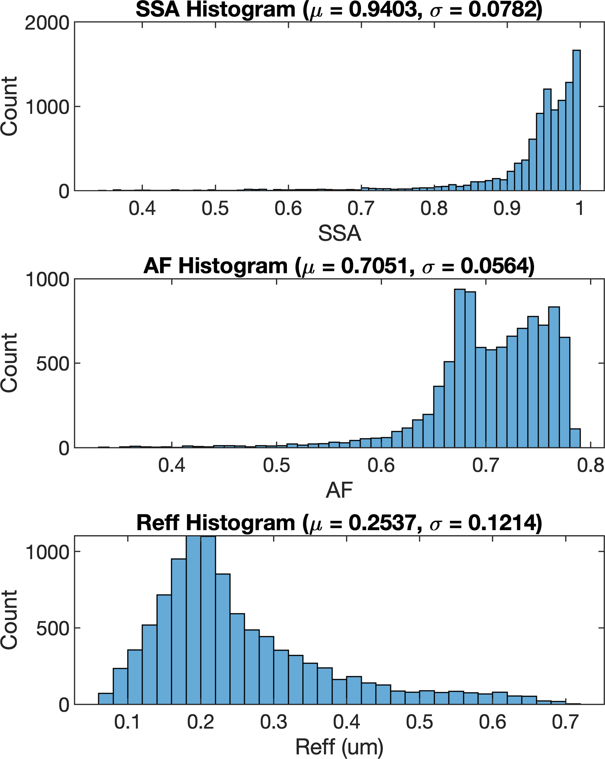 Specifically, as shown in Fig. 1, MOPSMAP takes as input a variety of aerosol microphysical parameters, including component fractions, particle size distribution, complex refractive index, particle shape, and ambient relative humidity. It then computes corresponding optical properties, such as SSA, AF, and Reff, which are usually observable using instruments such as sun photometers. We therefore reorganize the MOPSMAP simulation inputs and outputs according to actual observational conditions. In summary, part of the original MOPSMAP outputs (SSA, AF, and Reff) are repurposed as inputs to a machine learning model. This is not achievable by the traditional forward simulation itself, but can be enabled by data-driven learning.