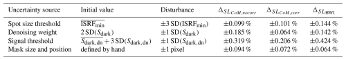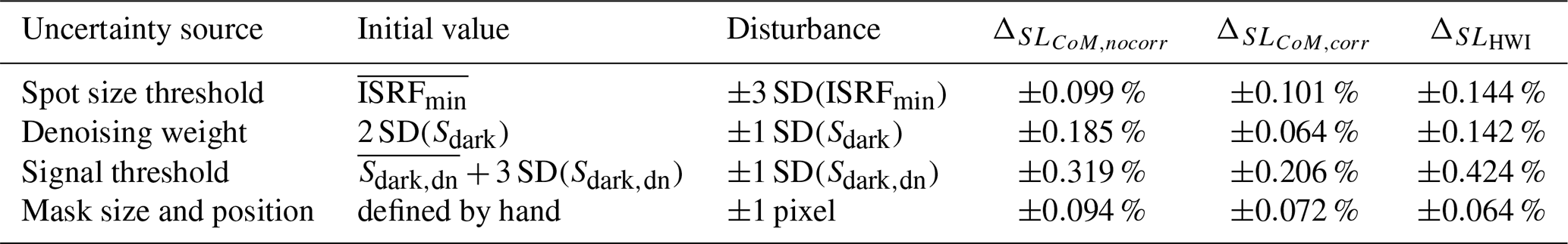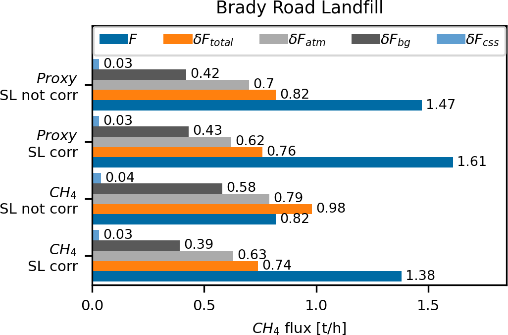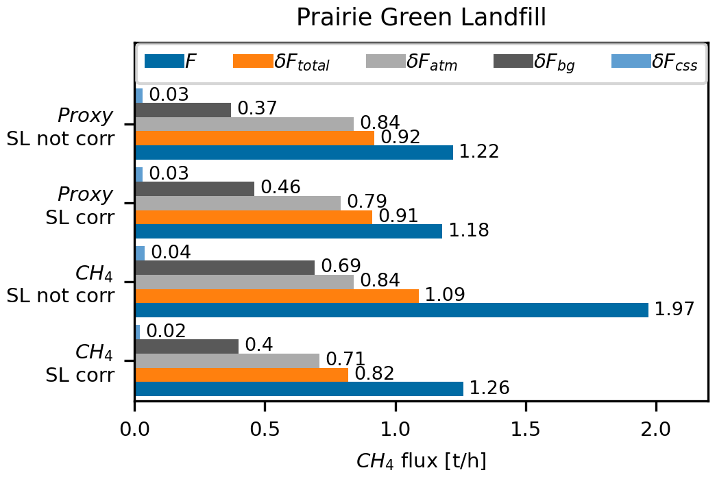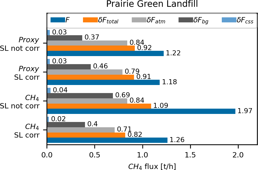 The total error δFtotal of the emission rate estimation is derived by Krautwurst et al. (2025). In this work, only the error contributors affected by the stray light correction are considered, leading to a reduced equation: