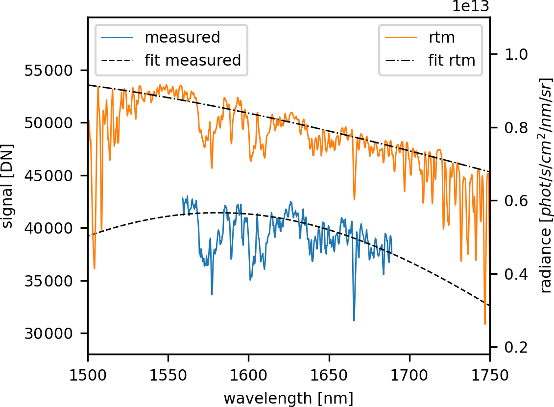 For an instrument with a given spatial and spectral resolution, the required column precision is determined by the detection limit required for the envisaged emission estimates (Jacob et al., 2022; Pandey et al., 2023). For example, the CH4 column single-measurement precision for SCIAMACHY, the first instrument applying solar backscatter absorption spectroscopy to remote sensing of GHGs from space aboard the ENVISAT satellite, was planned to achieve 1 % (Bovensmann et al., 1999). For one of its successors, TROPOMI (TROPOspheric Monitoring Instrument), the goal precision was tightened to 0.6 % for a single measurement (Veefkind et al., 2012). The calibration measurements, therefore, need to characterize radiometric errors precisely to implement corrections minimizing their impact on the measured spectra.