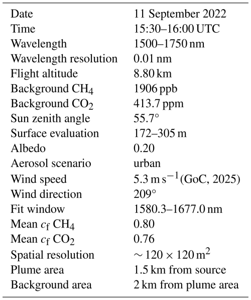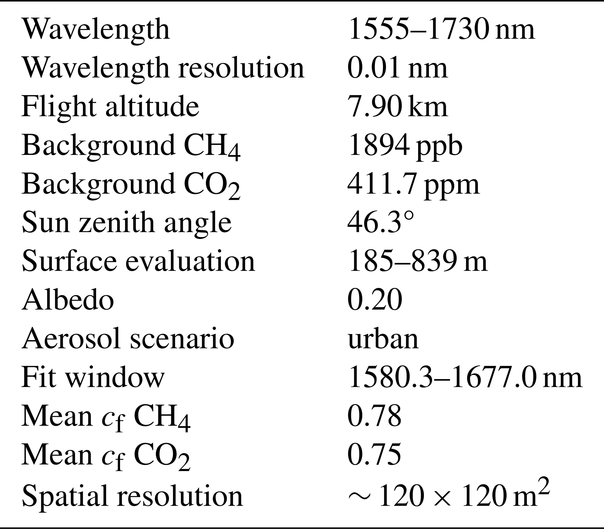 Krings, T., Gerilowski, K., Buchwitz, M., Reuter, M., Tretner, A., Erzinger, J., Heinze, D., Pflüger, U., Burrows, J. P., and Bovensmann, H.: MAMAP – a new spectrometer system for column-averaged methane and carbon dioxide observations from aircraft: retrieval algorithm and first inversions for point source emission rates, Atmos. Meas. Tech., 4, 1735–1758, https://doi.org/10.5194/amt-4-1735-2011, 2011. a, b, c, d